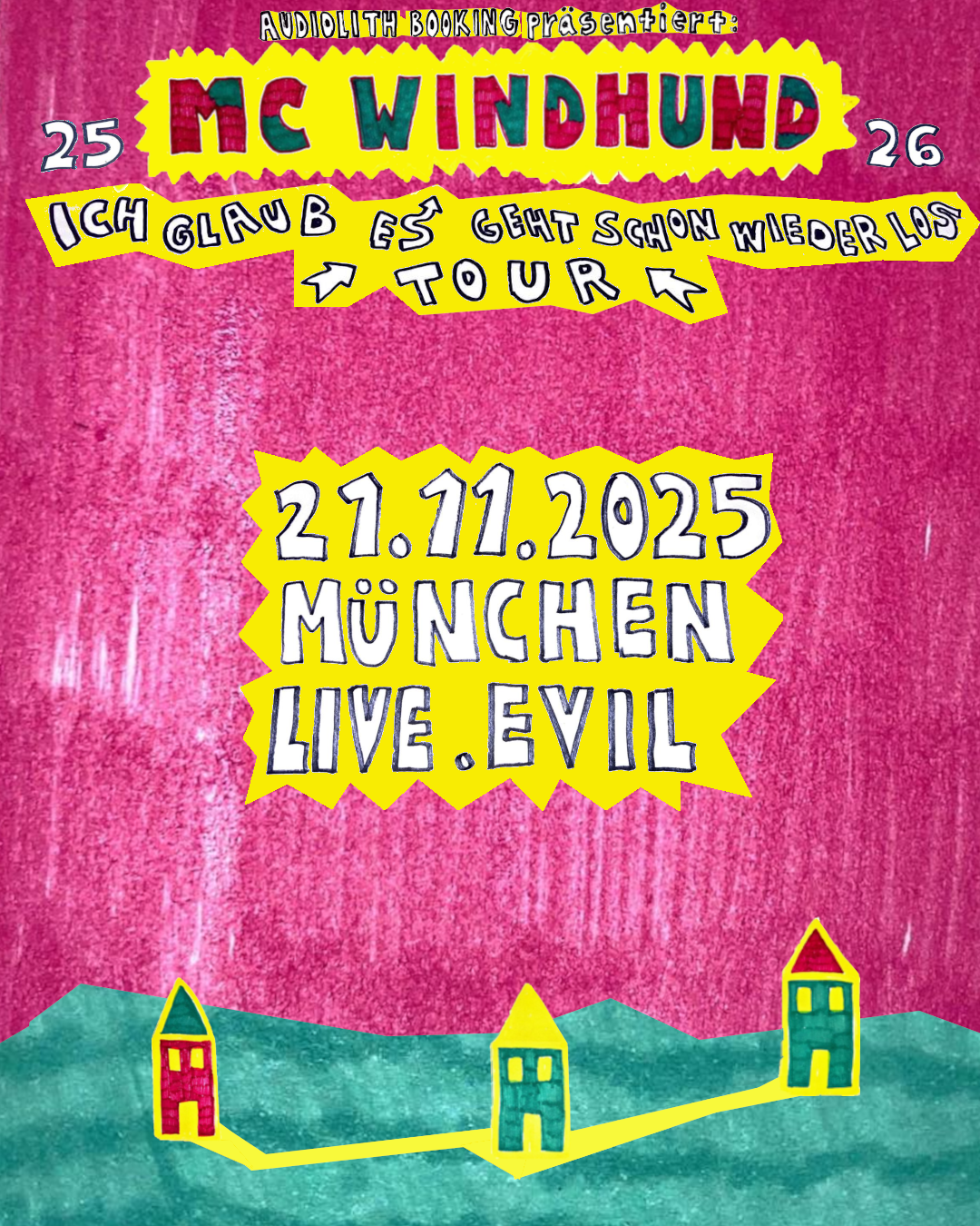 MC WINDHUND – ein Name, der längst durch die deutsche Musikszene hallt. Nach seiner komplett ausverkauften Debüt-Tour Anfang des Jahres steht der Hamburger Singer-Songwriter bereit, alles abzureißen: Seine nächste Tour „Ich glaub es geht schon wieder los“ wird kein Zurück kennen.